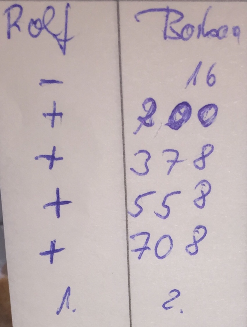 Und dann das noch: obwohl gut versteckt, hat doch noch jemand zuhause ein Rommé-Spiel gefunden und mitgenommen. Muss ich halt gewinnen.