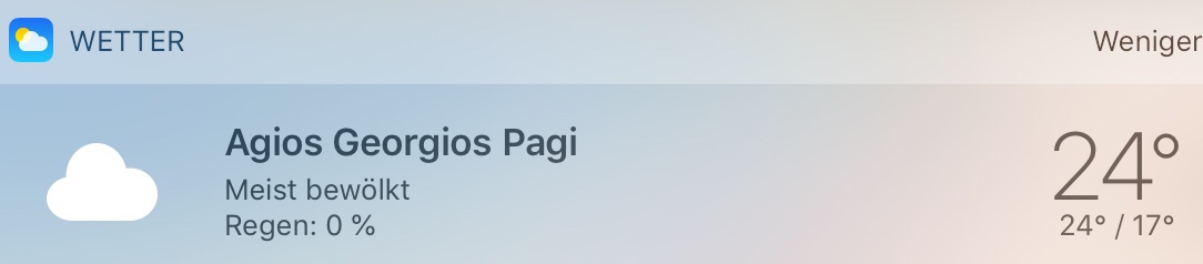 Im griechischen Fernsehen prophezeit der Wetterbericht parallel zum Essen wieder Regen für morgen. Ganz im Gegensatz zu allen anderen, wohl eher touristisch interessierten Griechen in Läden, Restaurants oder am Strand.