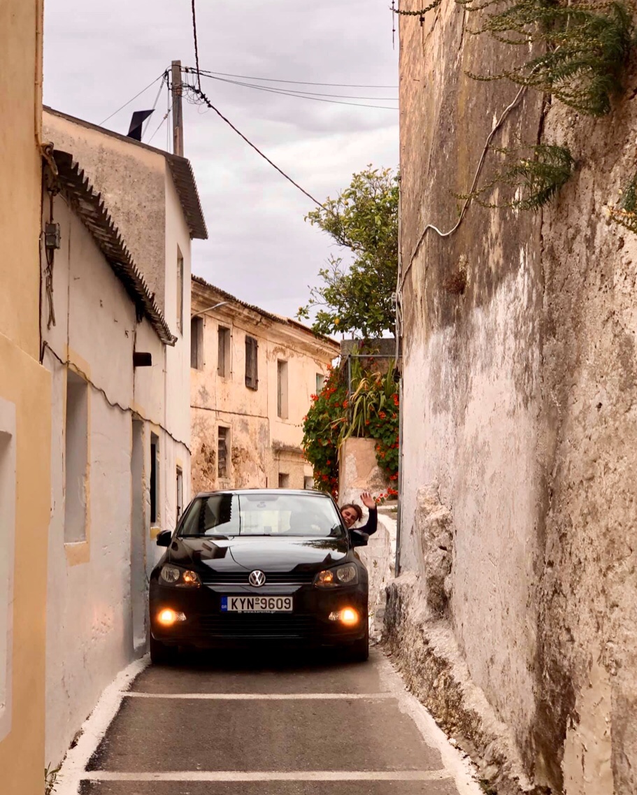 Und diese Straßen haben es in sich. In Korfu-Stadt meist zugeparkt. Im Rest der gebirgigen Insel verbinden sie, den Gegebenheiten der Landschaft folgend, wie schon seit Jahrhunderten die Ortschaften miteinander. Oft so eng, dass es manchmal weder vor noch zurück geht, wenn sich Fahrzeuge begegnen. Und doch gelingt es immer wieder, die Knoten aufzulösen. Und sei es, dass man in Einfahrten oder Vorgärten ausweicht. Grundsätzlich gilt: immer draufhalten. Wer bremst oder gar zurückweicht, hat verloren.