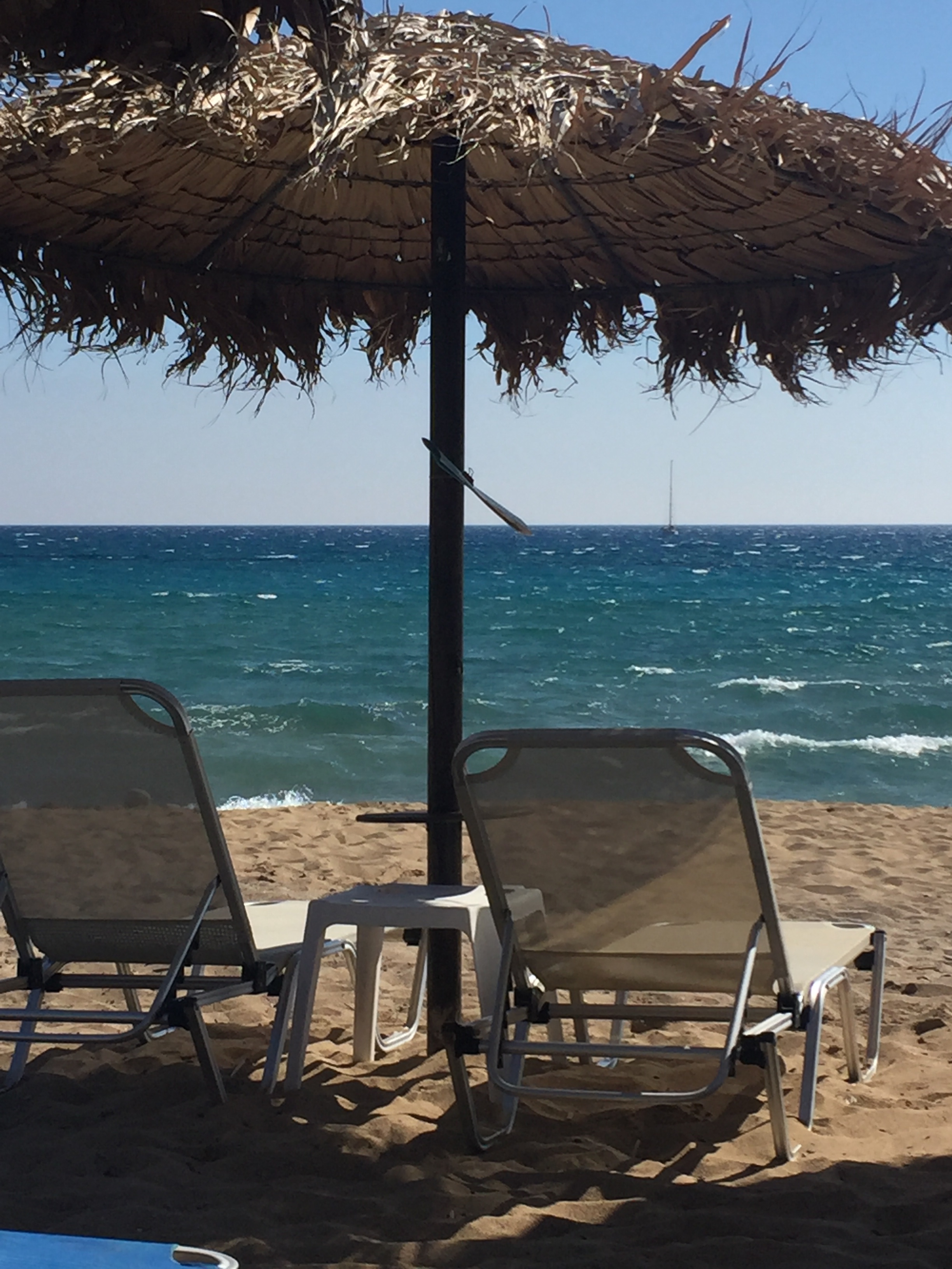 Allen Winden zum Trotz geht’s an den Strand. Heute gibt es erstmals eine Quittung für Schirm ⛱ und Sonnenliegen.