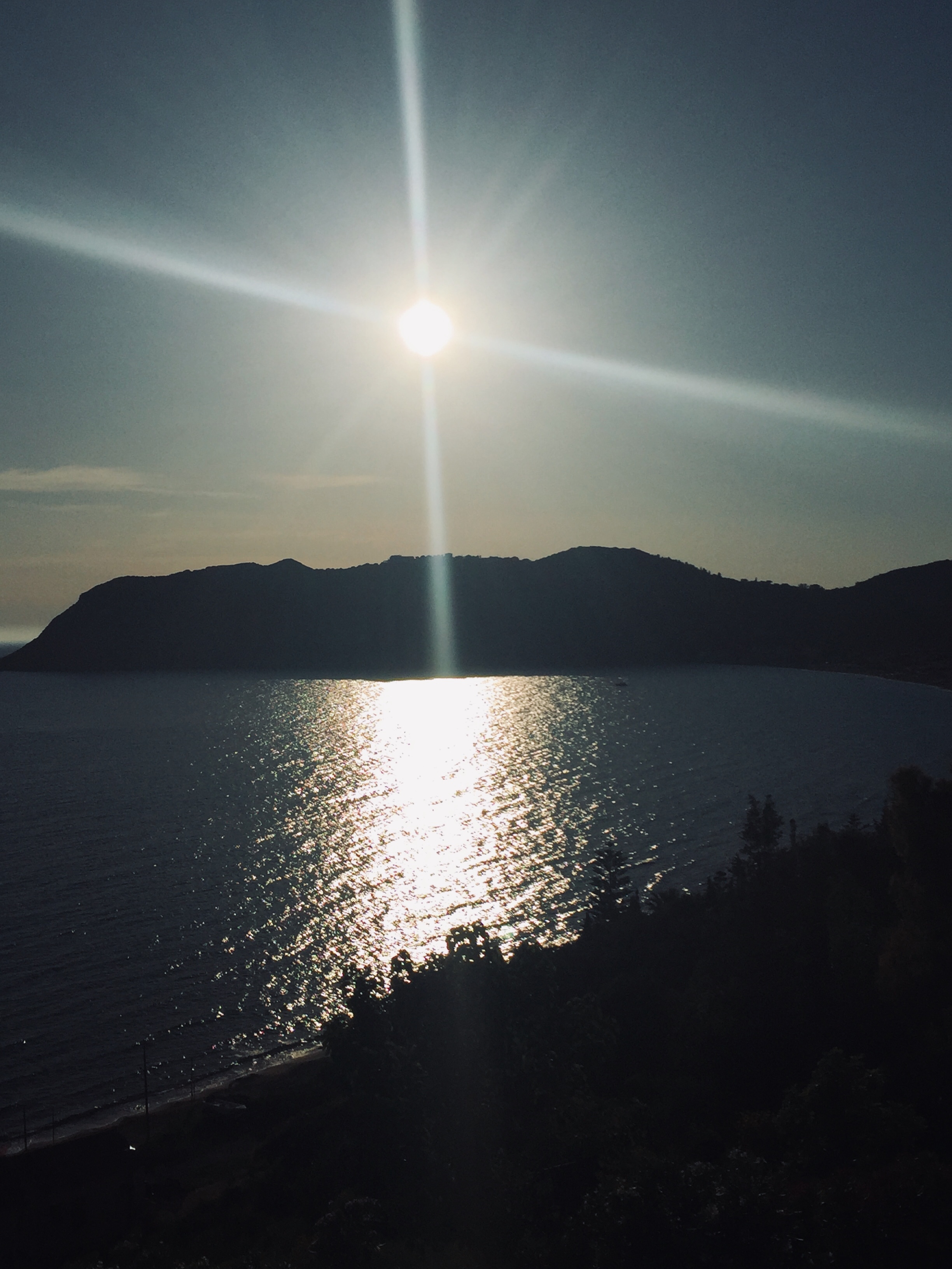 Abends zum „Panorama„. Windstille, 23 Grad, ein Tisch auf der Terrasse hoch über dem Meer.