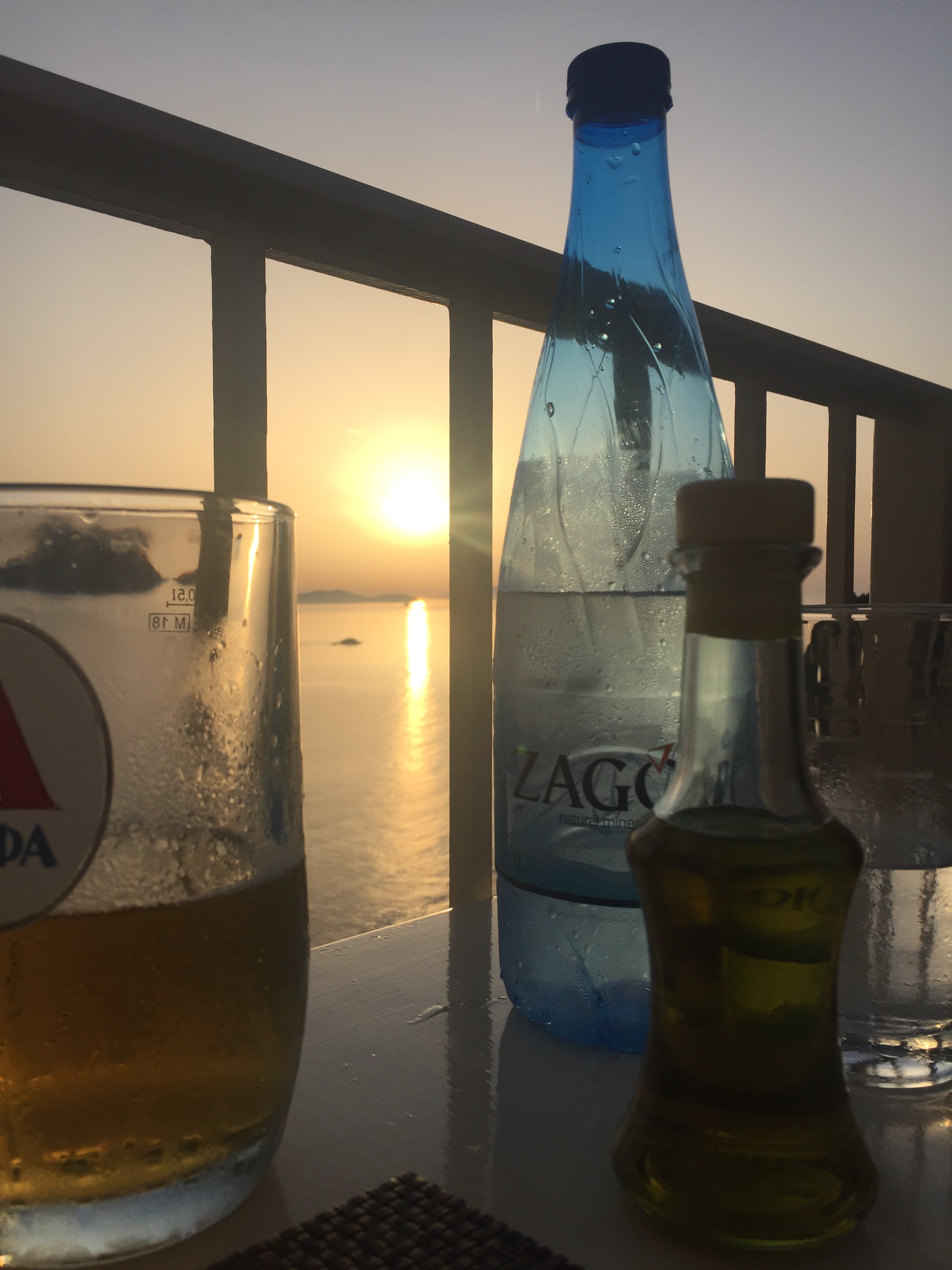Bezüglich der griechischen Bezeichnungen gibt es dabei allerdings ein Missverständnis, sodass für die Damen -der Autor hatte für sich Ouzo bestellt- Tsipouro serviert wird. Schmeckt ähnlich wie Grappa, nur noch eine Spur schärfer.