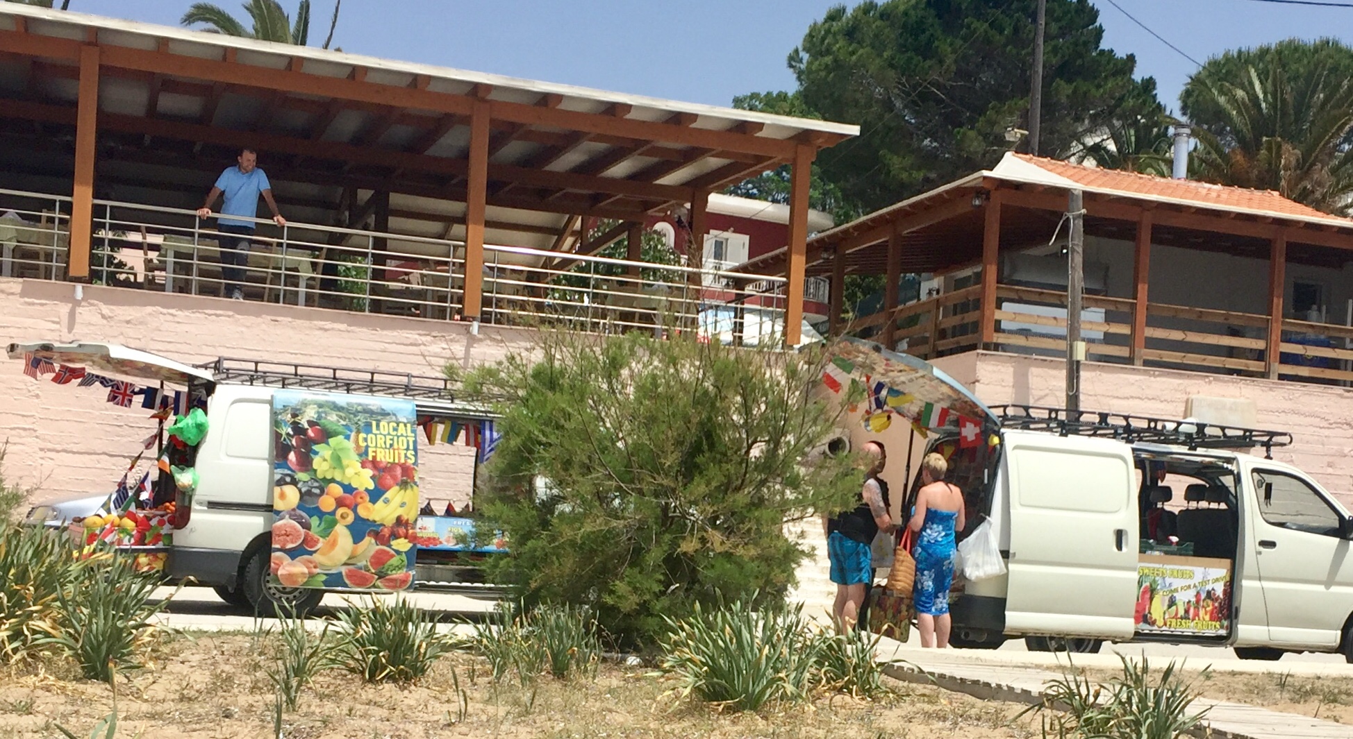 Premiere: gestern feierten Gäste aus dem Haus ihre Hochzeit auf Korfu. Standesamt (wozu auch immer; schließlich waren beide Eheleute Deutsche) in Agros, Lunch in der Villa Panorama, Hochzeitszeremonie auf dem Bergrücken hinter Afionas und Fete im zur Bar umgestalteten, früheren Fischrestaurant „Akrogiali“.