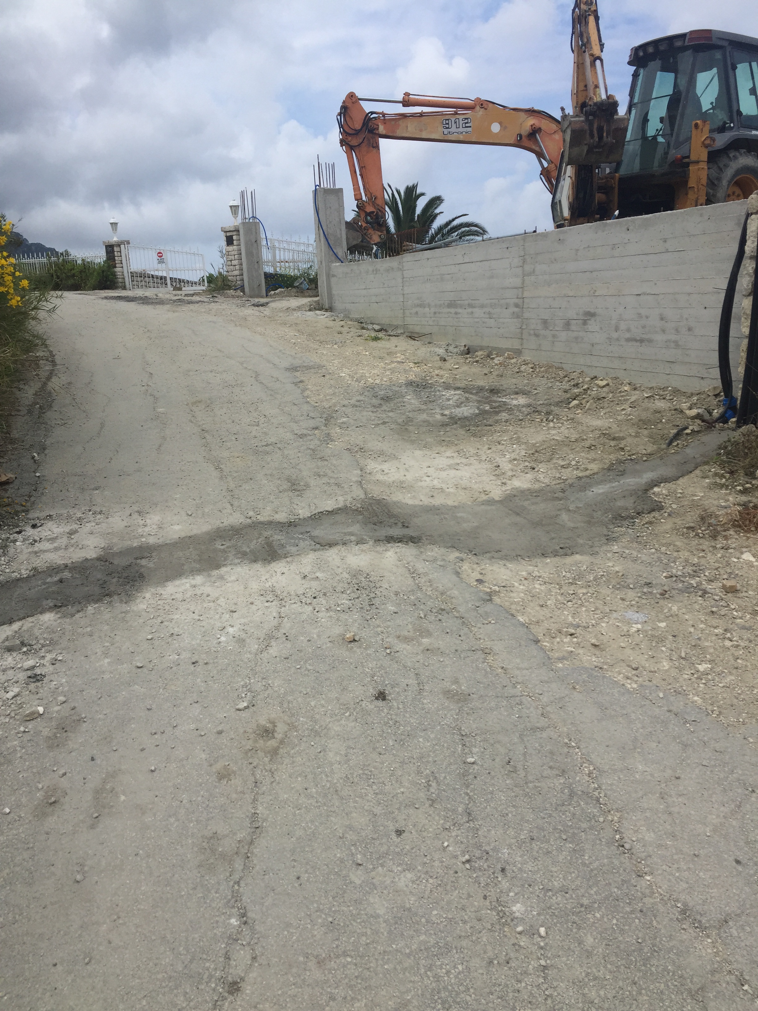 Nun, die Hotelanlage und der Appartement sind (fast) fertig. Die damals fast völlig zerstörte Zufahrtsstraße zu unserem Haus ist wiederhergestellt. Was auch immer man in Griechenland und Albanien darunter verstehen mag. Man hat ganz einfach Unmengen von Beton den Berg hinunter in die Löcher fließen lassen. Hier und da ragt auch ‚mal ein Rohr heraus und unter einem besonders „herausragenden“ Betonpfropfen vermuten wir eine tote Katze oder ähnliches.