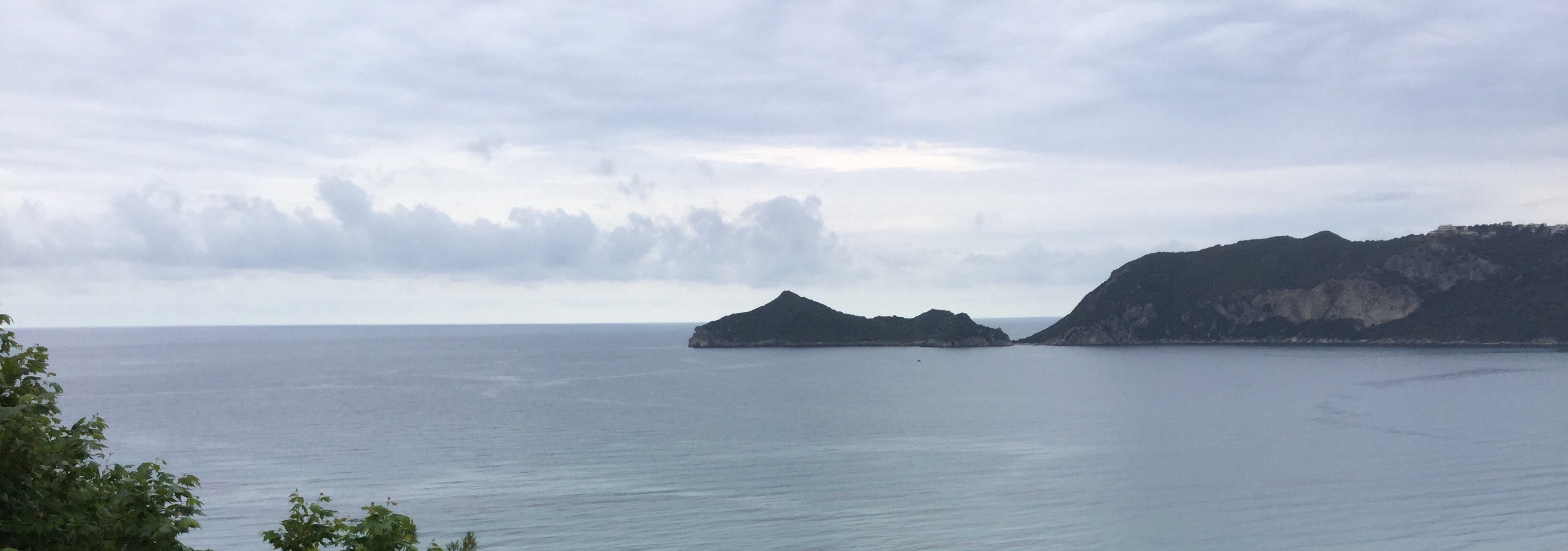 Zunächst einmal zum Wetter: die griechische Vorhersage für Korfu (bewölkt, regnerisch, nachmittags Gewitter) wird wohl hier an der Nord-West-Küste nicht anerkannt. Es herrscht eitel Sonnenschein. Die bedrohlich schwarzen Wolken werfen ihre Schatten nur Richtung Inselmitte und Ostküste.