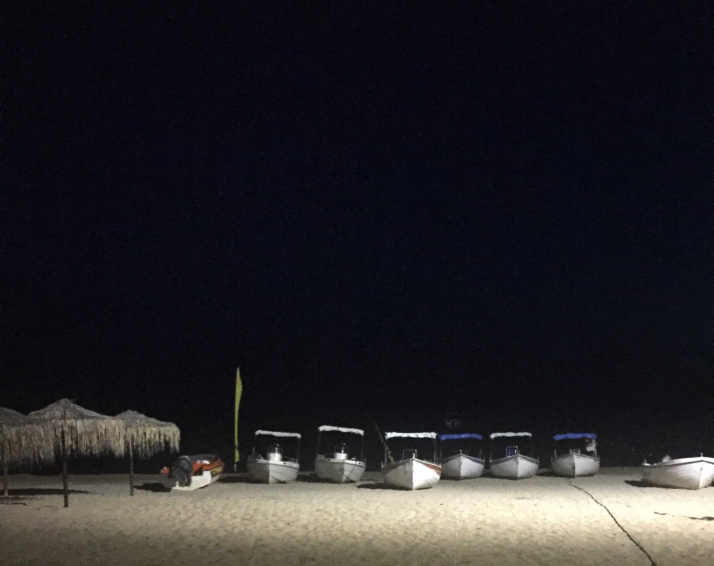 Kaum, dass wir auf dem Balkon sitzen, fällt in der gesamten Bucht der Strom aus. Nur noch der Mond und ein Sternenmeer über uns. Unheimlich fast. Nach fünf Minuten gehen alle Lichter wieder an. Schade eigentlich.