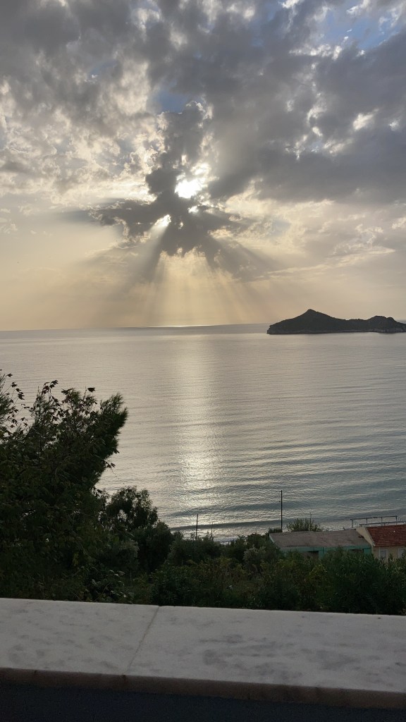 Schon um acht in der Früh klopft uns Maria aus dem Bett und bringt frisch zubereitete, noch heiße, in Öl ausgebackene und in Honig ertränkte Krapfen vorbei. „Für ein gutes Frühstück.“ Weitere Zutaten gehe ich im Supermarket einkaufen, wo mich Inhaber Spiro mit Tränen in den Augen -allen Corona-Regeln zuwider- in die Arme schließt, mir stolz von der Geburt seines Töchterchens berichtet und ich ihm von meinem Enkel erzähle.