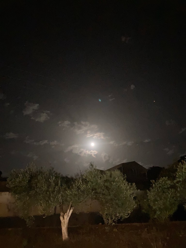 Den Tag lassen wir dann im stylischen Garten des „Butterfly“ ausklingen. Zu Beginn regnet es kurz; aber am Ende erscheint Frau Luna am Horizont und wir reflektieren angeregt 20 Jahre Urlaub auf Korfu. Dabei lassen wir uns auch nicht durch die eher uninspirierten Cocktails die gute Laune verderben.