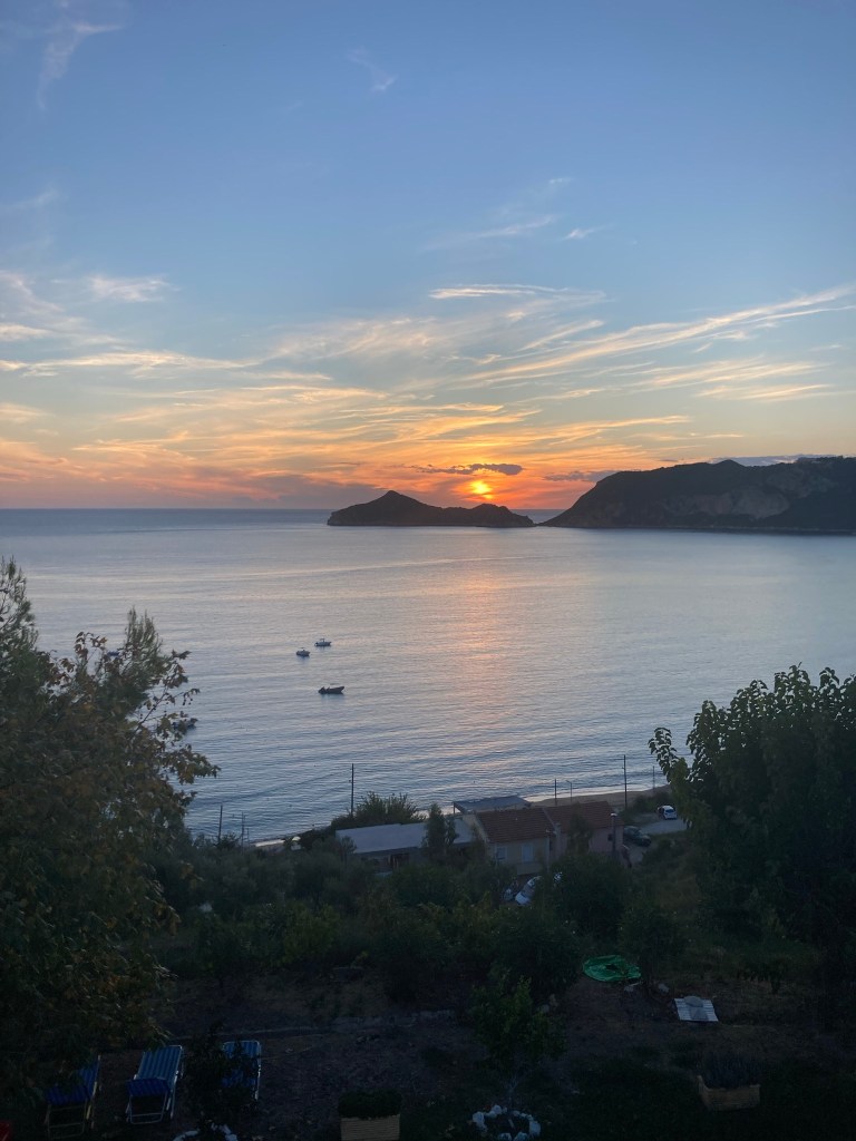 Wieder so ein herrlicher Morgen. Frisch, aber eine klare Luft und vom Balkon aus der unverstellbare Blick auf das türkisfarbene Ionische Meer. Früher Einkauf bei Spiros, der wegen Anton ganz aus dem Häuschen ist. Er berichtet von einer Mega-Saison und dem Aufatmen nach den Corona-Beschränkungen. Natürlich gibt es eine Flasche Wein zur Begrüßung.
