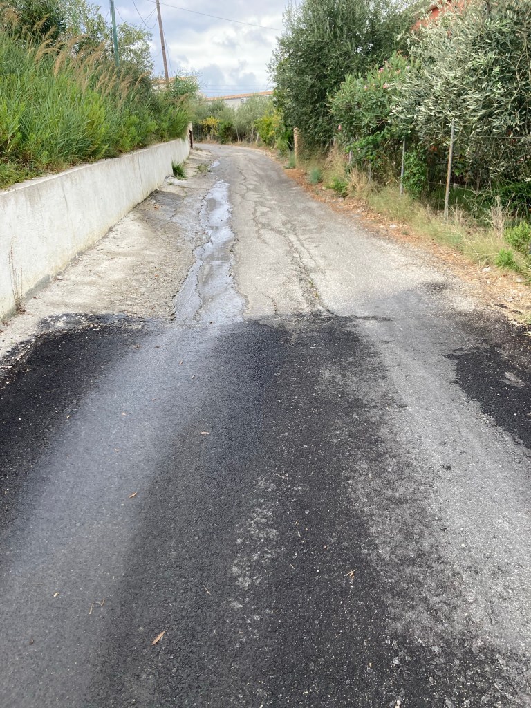 Genauso wie die Marterstrecke rauf zu „unserem“ Haus. Nach ca. 100 Meter endet die Renovierung. Den Grund kennen wir jetzt auch: die Teermaschine war zu breit für den Rest der Straße.