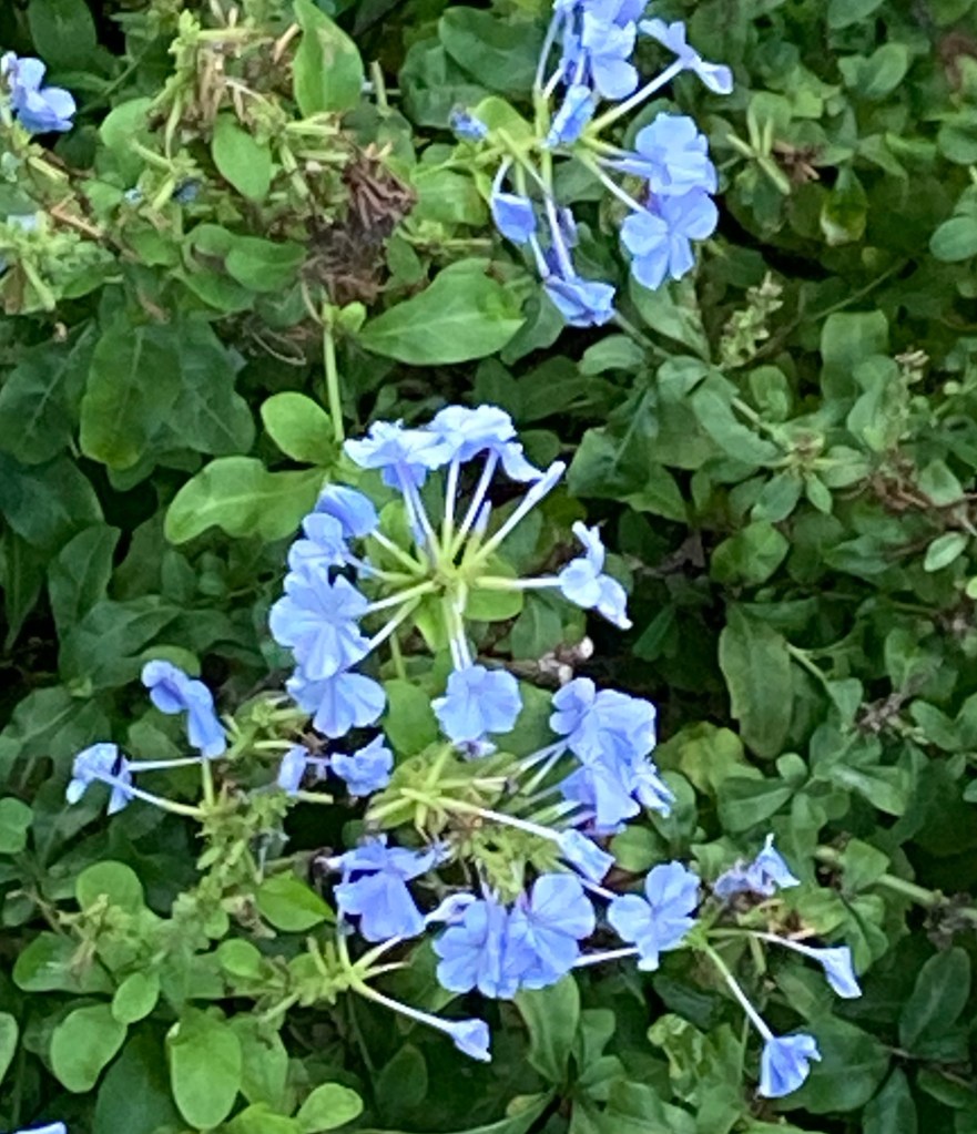 Zum Frühstück ist die Luft wieder klar und die Wespen sitzen schon in den Startlöchern. Die Tüte mit den Brotresten der vergangenen Tage wird am inzwischen ziemlich vergammelten Hühnerhof hinter’m „Butterfly“ ans Tor gehängt und wir gönnen uns ein Schokocroissant und ein Ham&Cheese-Pie mit extra Oregano von der Kaffeebud. Auf dem morgendlichen Dorfrundgang kann auch endlich der von γυναίκα μου begehrte, unbekannte blau blühende Strauch mit freundlicher Unterstützung von Google als „Kap Bleiwurz“ identifiziert werden. (Eine halbe Stunde später ist er bereits im Internet bestellt.)