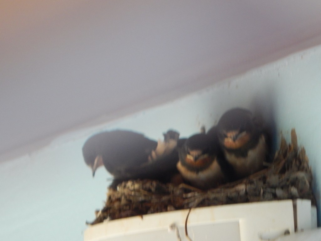 Nebenan zwitschern noch immer die Schwalben über ihrer Mülltüte. Die gestern eingezogene dreiköpfige Familie scheint es zu akzeptieren.