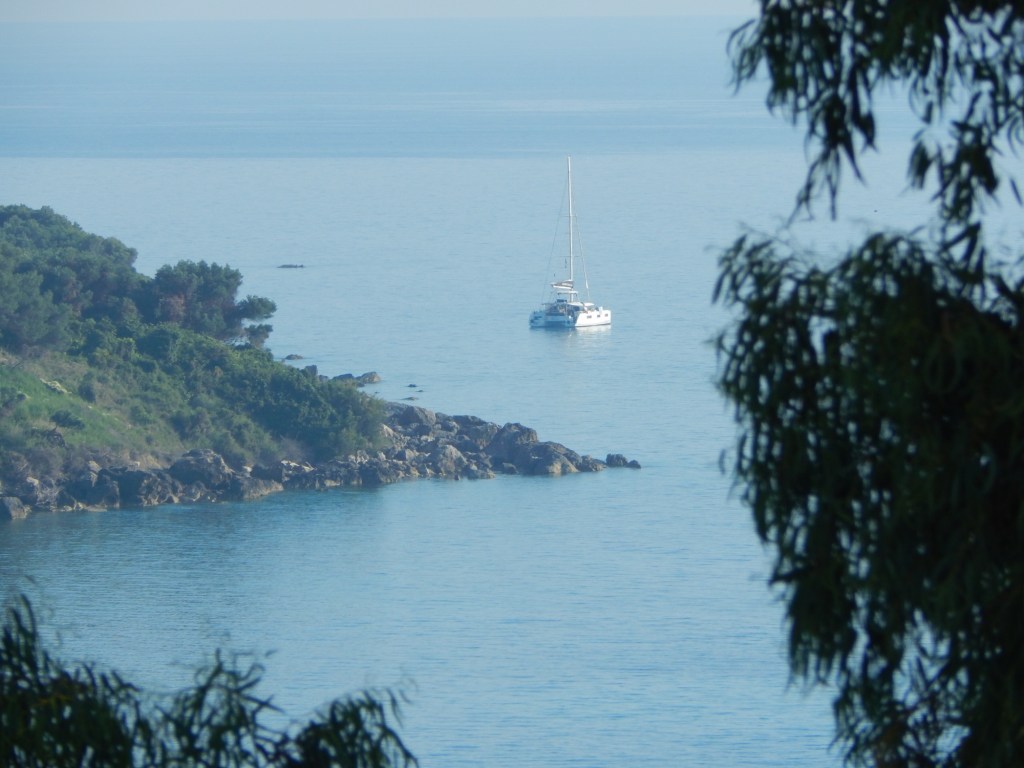 Später am Tag können wir von hier oben „Corfu-CSI“ verfolgen. Eine Polizeistreife filzte erst den PkW einiger junger Männer und später auch deren Wohnmobil. Leider haben wir das Finale verpasst, weil die Gattin zur Massage und ich dringend zu den Ermittlungen von Carl Mœrck zurück musste, dessen beide letzten Fälle ich hier am Kindle verschlinge.