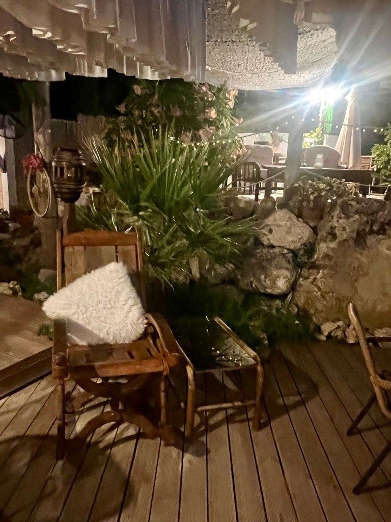 Nach einem wunderschönen Strandtag entscheiden wir uns kurzfristig, zum Essen nach Afionas zu fahren. Wir landen schließlich im „Luuna“, das erst letztes Jahr eröffnet wurde. Was für eine Lage! Super stylisch, super lecker. Spitzen-Service. Und so was von entspannt! Etwas teurer, aber jeden Euro wert. Gegrilltes Gemüse als Vorspeise, zum Hauptgang Lammkeule und „Crispy Chicken“, süß-sauer-scharf. Danach noch ein Kuchen, mit Dubaischokolade gefüllt und Baklava, jeweils mit Vanilleeis. Insgesamt für 80,00 Euro. Wenn es überhaupt ein Manko gab: die Gästeschar war zu 100% deutsch.