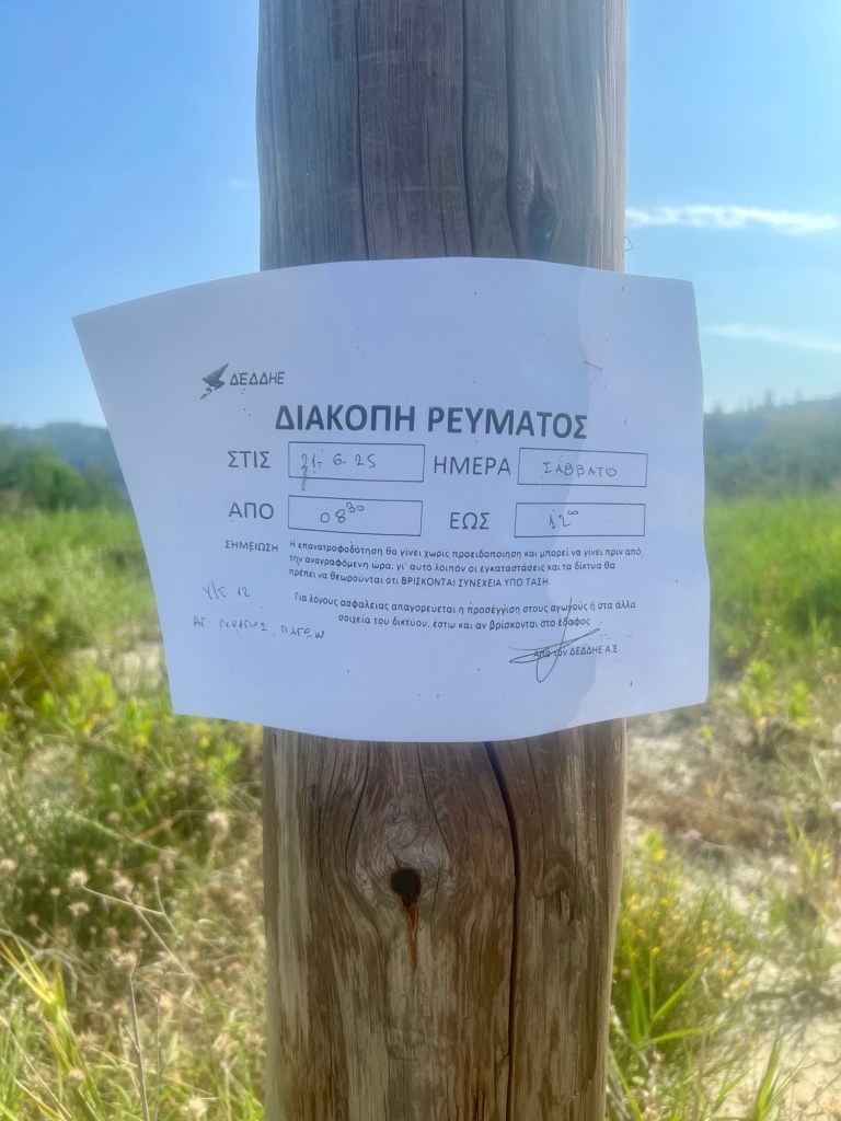 Bevor wir das nächste Kapitel des „Tatsächlich faulsten Urlaubs aller Zeiten“ aufschlagen, müssen wir noch einen Tisch im „Gravia“ für heute Abend reservieren und die Nachricht (mit Heftzwecken an die Strommasten getackert) verdauen, dass uns morgen früh der Strom abgeschaltet wird.